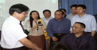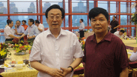 浙江天臺山梅氏宗譜 中國抗癌協會常務理事、河南省抗癌協會會長楊文獻教授和《百花散》傳人梅先生合影